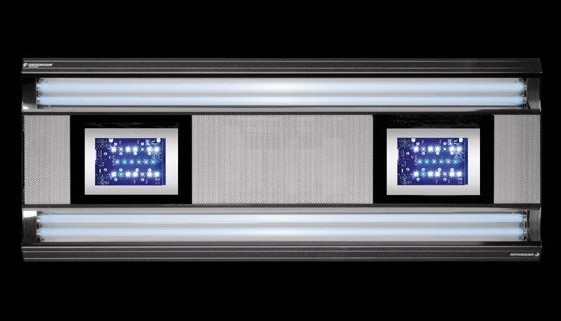 De Giesemann Aurora Hybrid combineert T5 verlichting met LED verlichting, wat een zorgt voor een optimale verspreiding van licht in je aquarium. Er zijn geen schaduwen in je bak, terwijl de koralen niet zullen verbranden. Zowel de T5 als de LED verlichting is dimbaar en in te stellen op 5 kanalen. Hierdoor kun je het licht helemaal naar wens instellen. De Aurora is ook makkelijk te bedienen met een Bluetooth verbinding. Het brede spectrum aan licht is niet alleen prettig voor het oog maar ook goed voor de koralen. De ledclusters bevatten elk 75 watt aan LEDs en zijn verspreid over full spectrum white, blue, royal blue, red, en violet TRU-UV sub 400nm. Om de opbrengst van de T5 te optimaliseren zijn er reflectoren geplaatst die maar liefst 99% van het licht weerkaatsen.