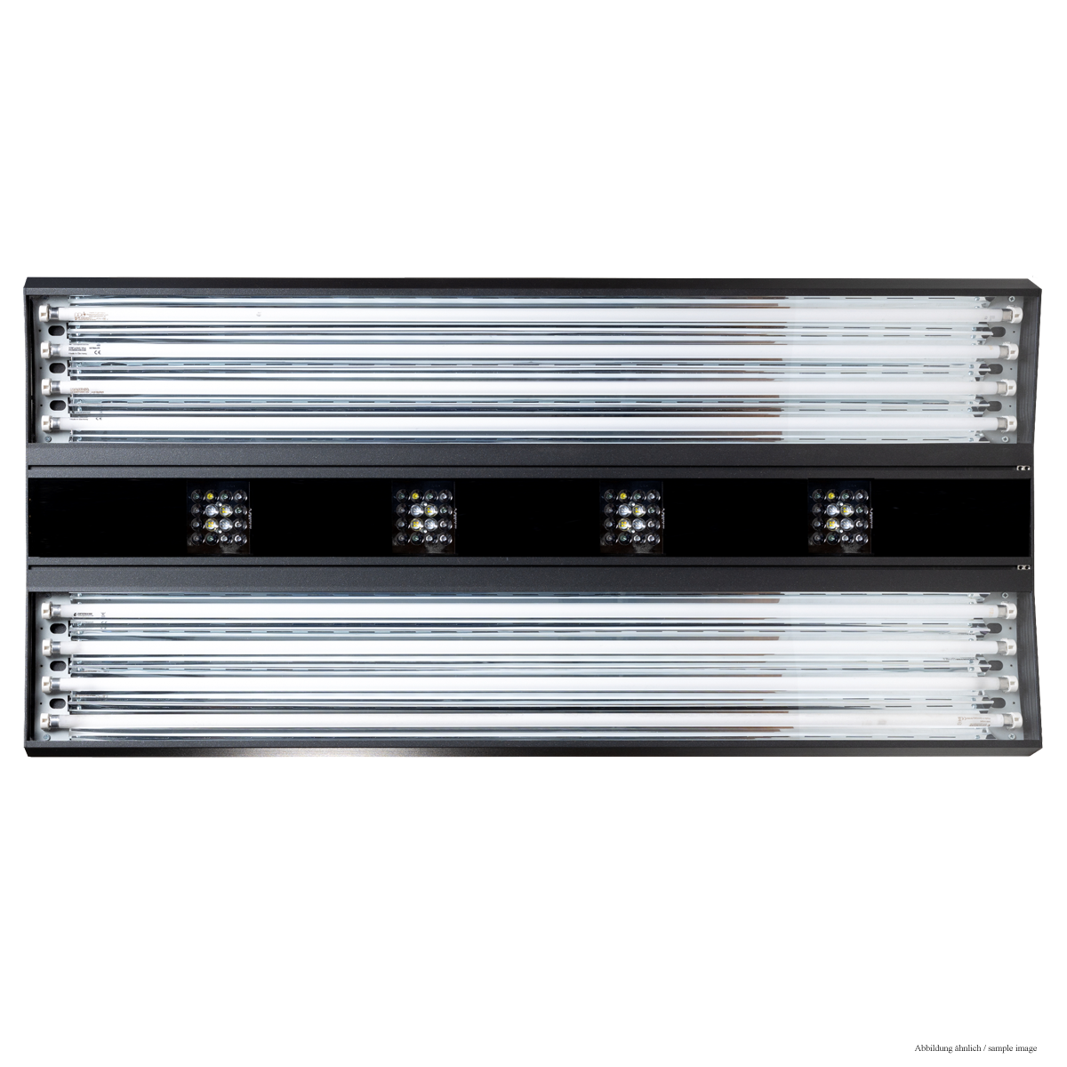 Met tot 5 krachtige LED-clusters met elk een maximaal vermogen tot 95 watt wordt al een buitengewone lichtopbrengst bereikt. Deze LED clusters worden aangevuld met maximaal 8 dimbare HO T-5 lampen, elk in groepen van 2 dimbaar van 0-100%. U bepaalt zelf de exacte lichtmix.