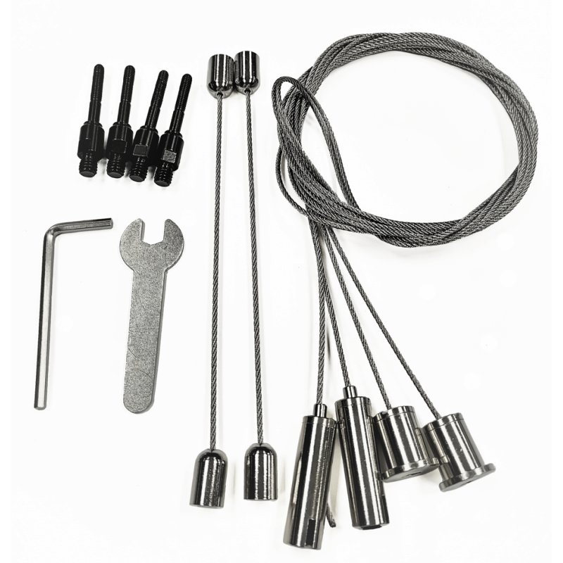 De Red Sea ReefLED ophangkit maakt het mogelijk om de individuele lampen boven uw aquarium te hangen, hetzij aan het plafond of aan muurbeugels. Als u uw lampen liever niet rechtstreeks aan het aquarium of de standaard monteert, bevat deze ophangkit de nodige hardware om uw ReefLED-lamp om te bouwen met een verstelbaar draadophangsysteem.