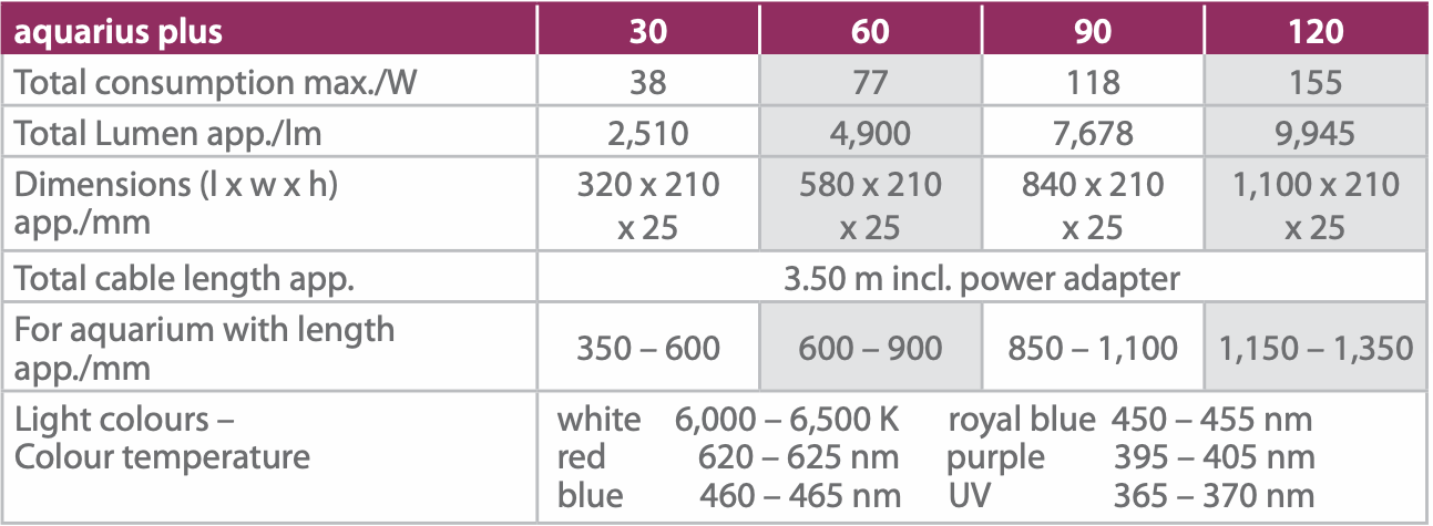 Lichte kleuren en kleurtemperaturen Aqua Medic aquarius plus: