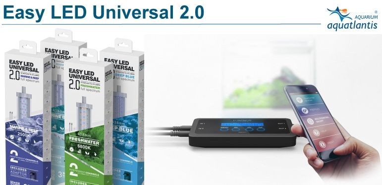 De nieuwe generatie Easy LED Universal 2.0 verlichtingssysteem is ontworpen om makkelijk aan te passen aan ieder aquarium. De LED verlichting is verkrijgbaar in verschillende maten en kunnen ook worden bevestigd aan de T5 of T8 houders. Ook kunnen ze op het aquarium worden geplaatst door middel van de verlengbare beugels.