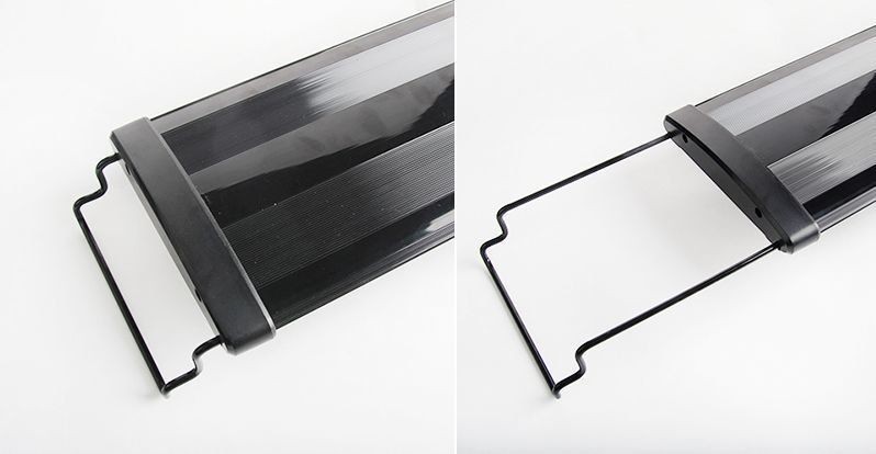 De metalen beugels zijn maximaal 20 cm uit te schuiven, hierdoor is het mogelijk om deze armaturen op diverse maten aquaria te plaatsen. De units zijn maar 4, 1cm hoog, hierdoor passen ze gemakkelijk in de bestaande lichtkap.
