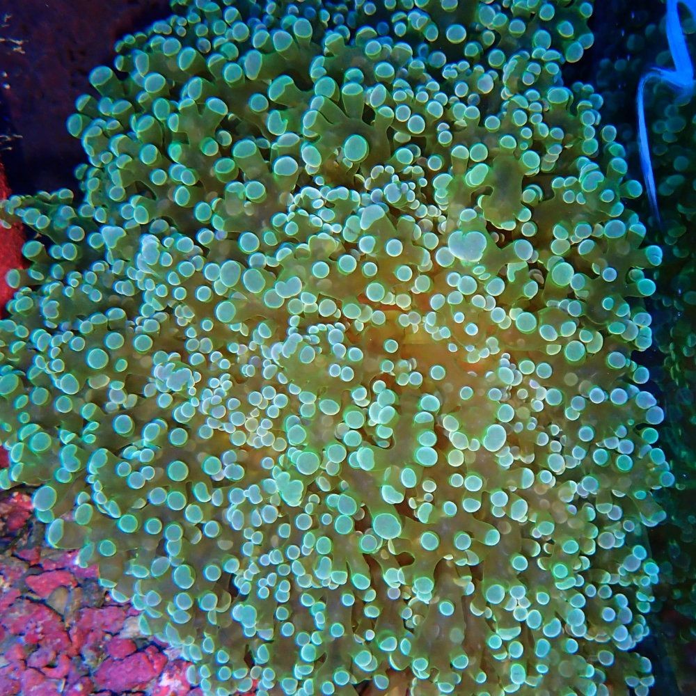 - Prachtige LPS-koraalsoort met groene tentakels en afgeronde uiteinden