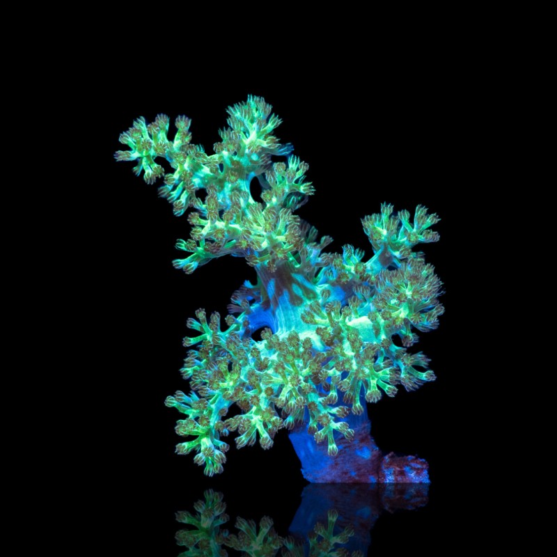Deze Capnella “Tree Green” is ideaal voor beginnende rifliefhebbers die op zoek zijn naar een gemakkelijk te houden en snelgroeiend zacht koraal. Ook in mixed reefs vormt hij een mooie overgang tussen LPS en andere softies. De boomachtige structuur zorgt voor natuurlijke hoogte en beweging in je aquascape.