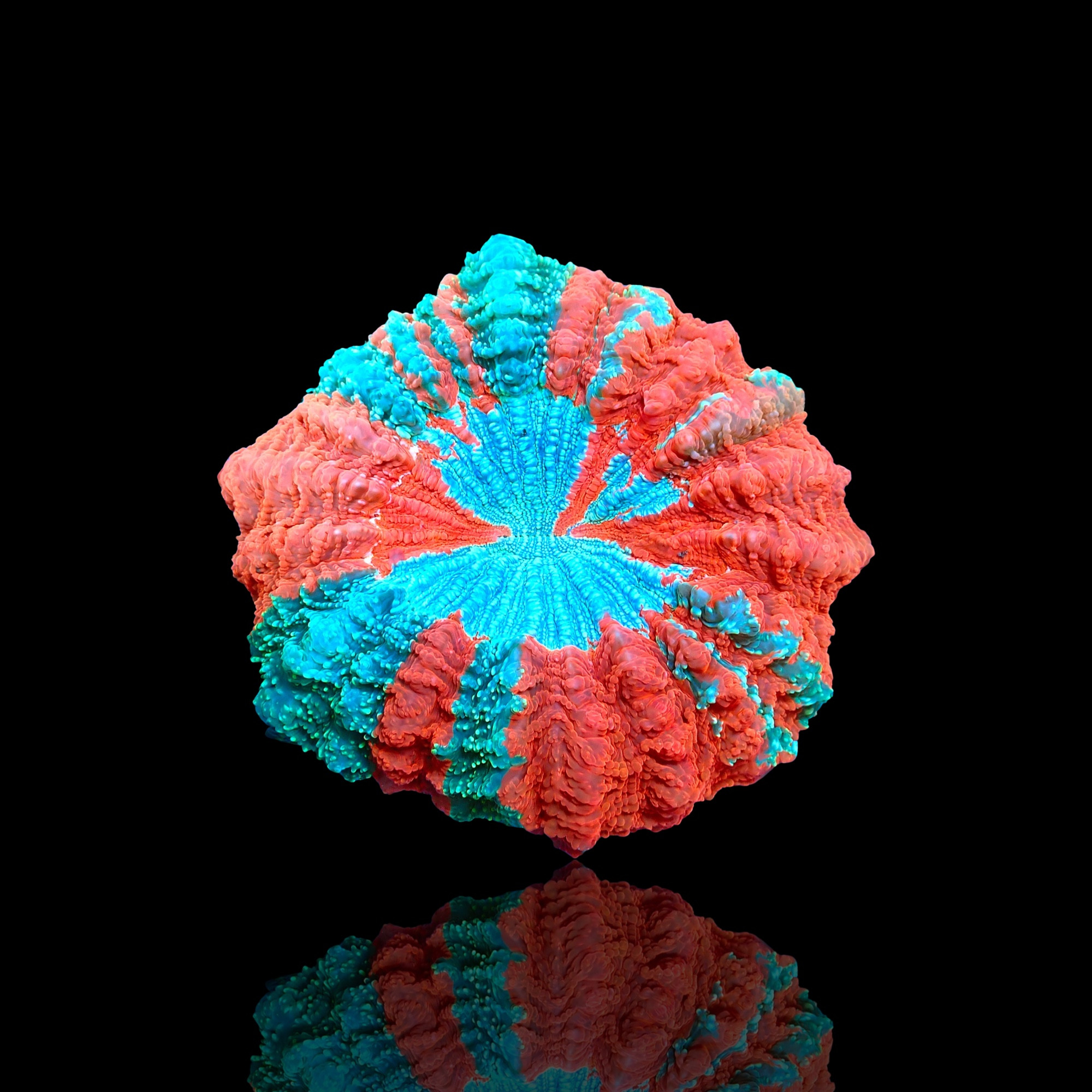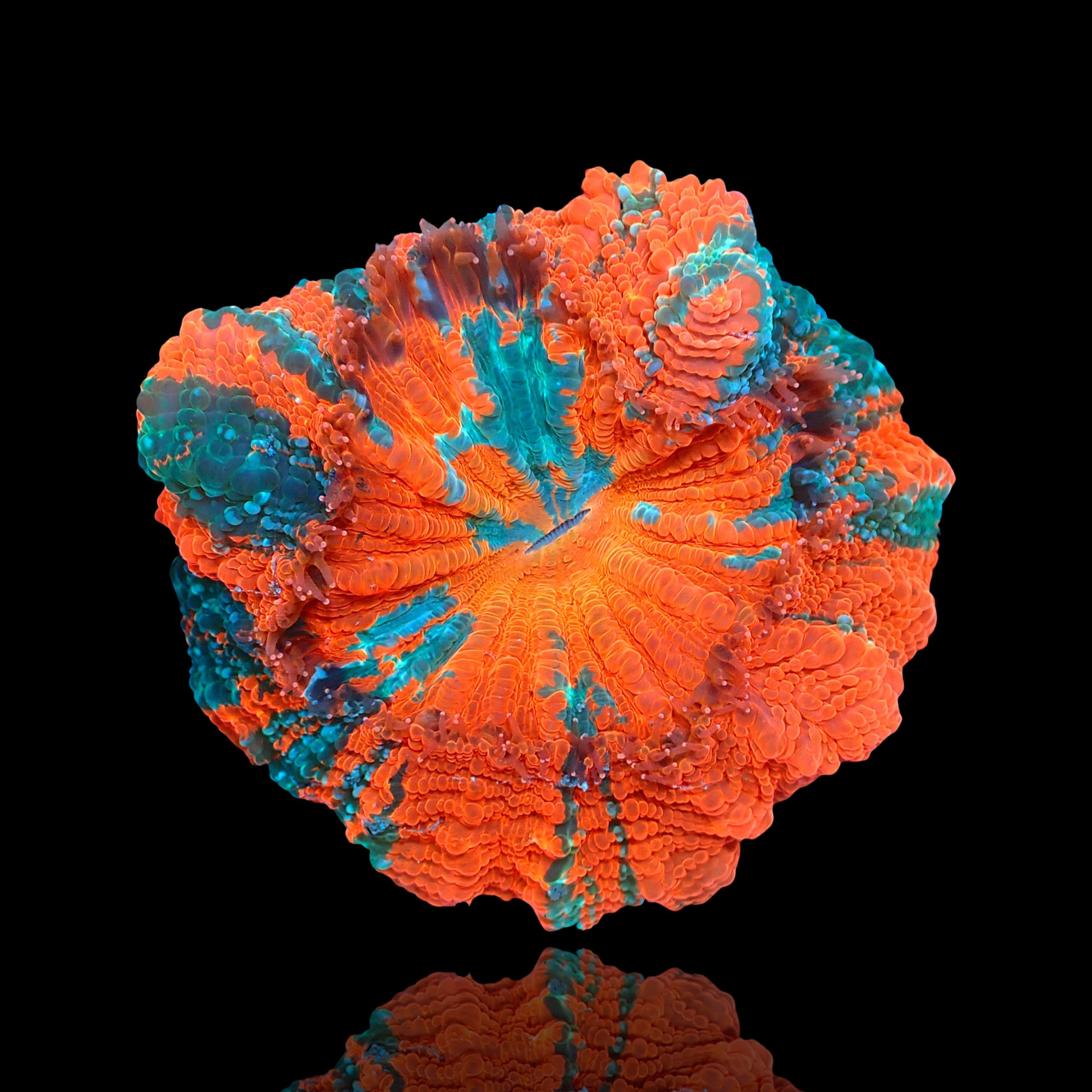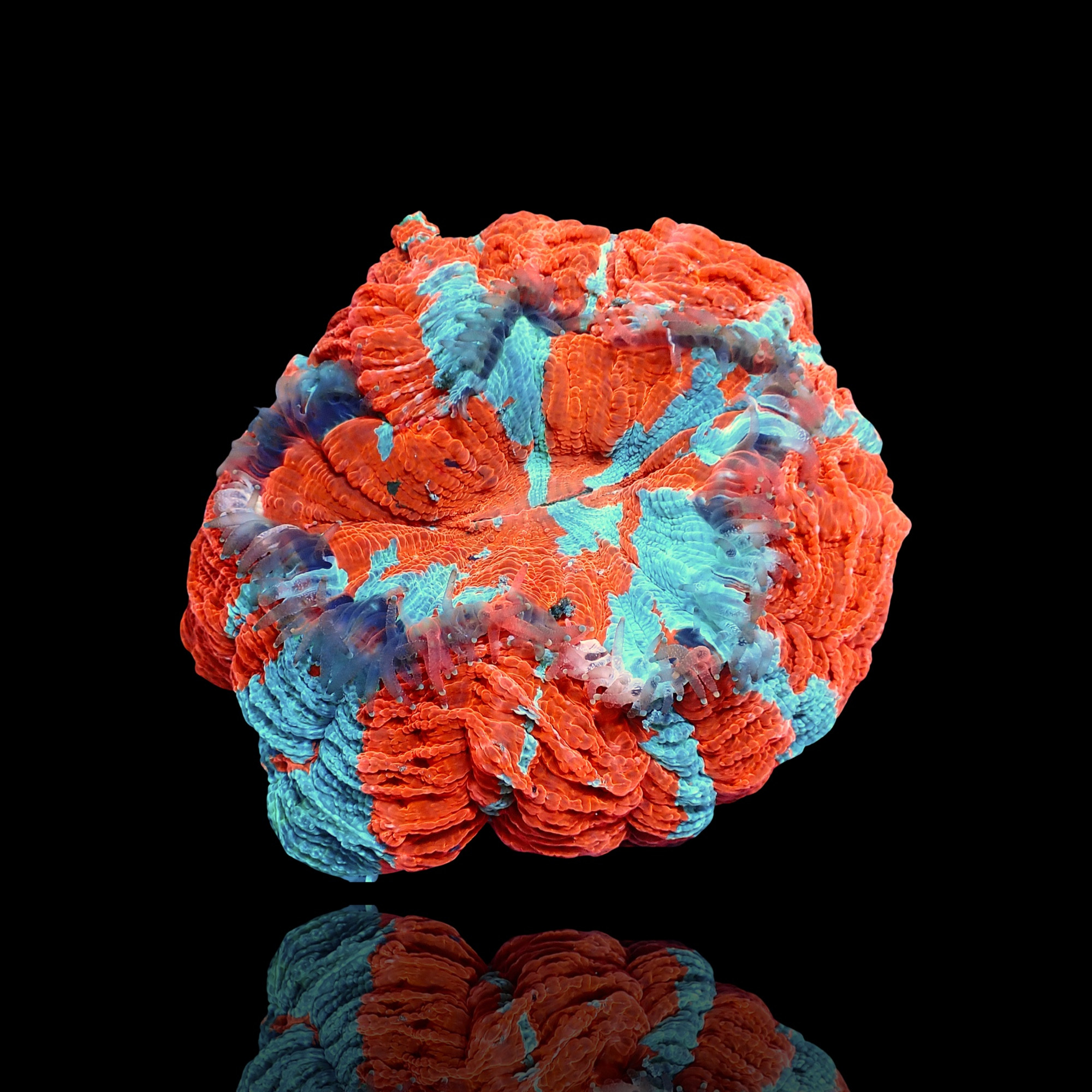 De Acanthophyllia deshayesiana – Bleeding Apple is een van de meest exclusieve en gewilde LPS-koralen. Dit solitair levende koraal staat bekend om zijn intens rode kleuring, die vaak wordt gecombineerd met groen en andere tinten, waardoor het beroemde “bleeding apple”-patroon ontstaat. Met zijn grote, vlezig uitziende poliep en golvende structuur vormt dit koraal een indrukwekkend middelpunt in elk rifaquarium.