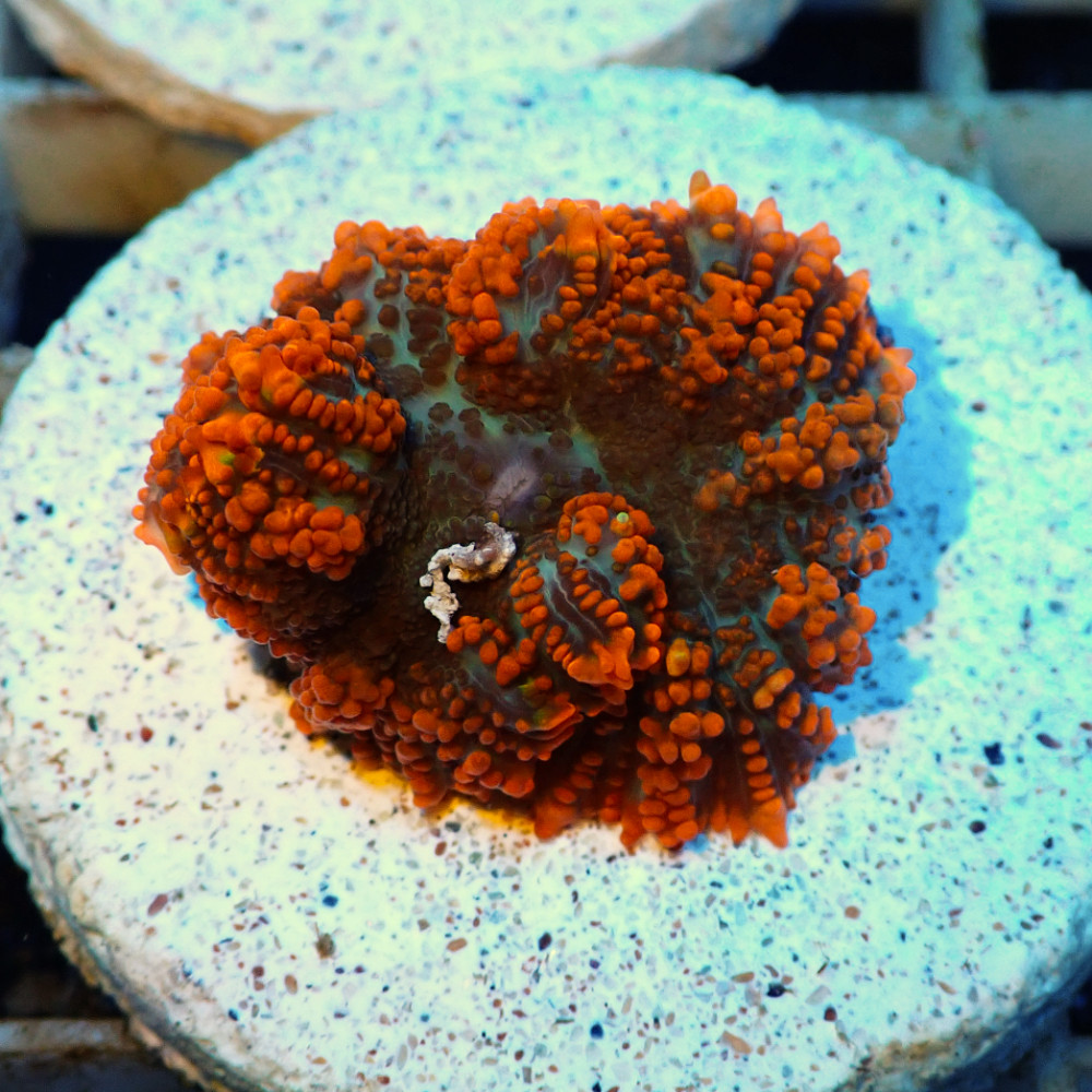 Deze Rhodactis-variant is eenvoudig te houden, tolerant voor uiteenlopende licht- en stromingscondities en geschikt voor plaatsing op zowel steen als substraat. Dankzij de fluorescerende eigenschappen onder LED-blauwlicht vormt hij een echte eyecatcher, zowel overdag als in avondverlichting.