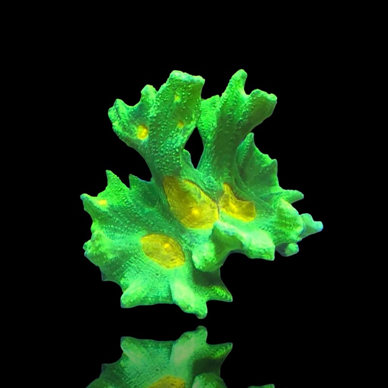 Pectinia "Space Invaders" is een van de meest gewilde LPS-koralen in de hobby. Met zijn gloeiende groene basis, heldergele mondopeningen en grillig uitlopende ribben lijkt hij recht uit een sciencefictionfilm te komen. Overdag straalt hij al, maar onder blauw LED-licht komt zijn ware pracht pas echt tot leven.