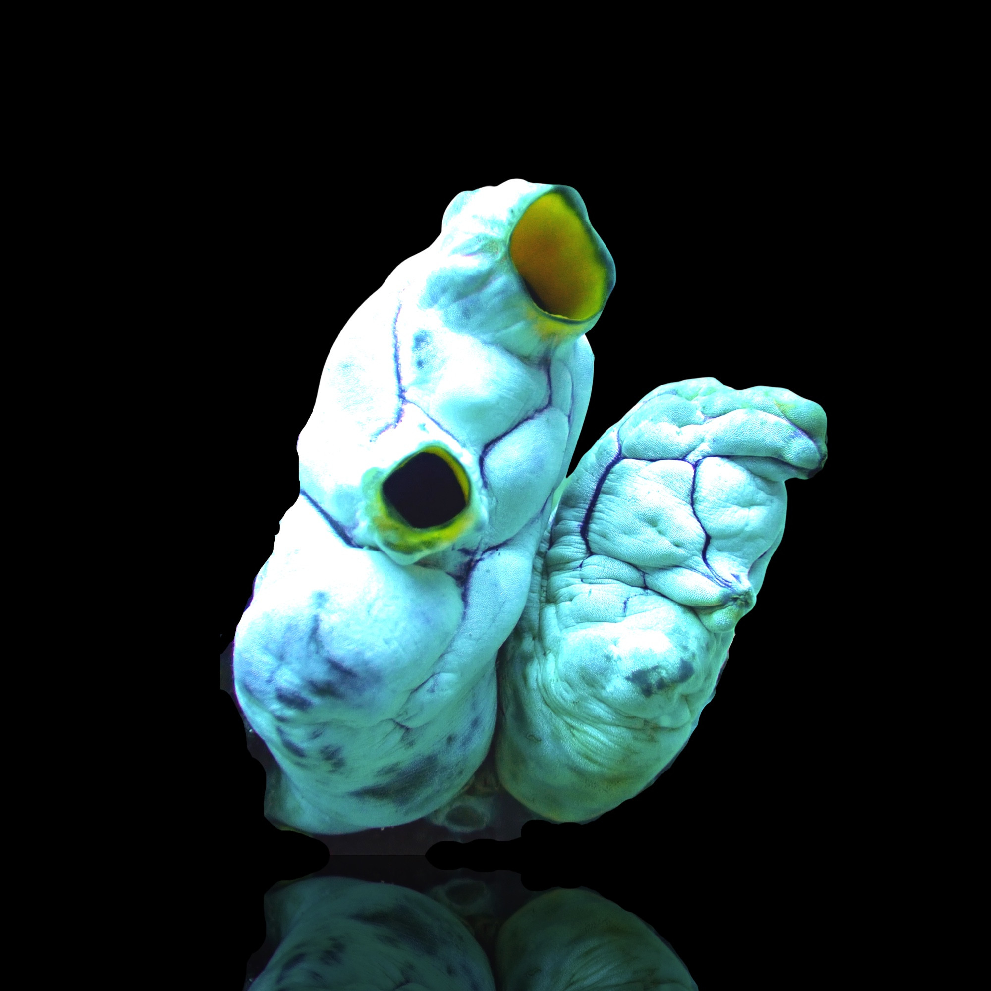 De Polycarpa aurata is een bijzondere zakpijpsoort die opvalt door zijn goudgele lichaam met fraaie blauwe of paarse accenten rond de sifonopeningen. Deze filtervoeder draagt actief bij aan het helder en gezond houden van het aquariumwater door fijn plankton en organisch materiaal uit het water te filteren. Dankzij zijn unieke kleur en vorm is de Polycarpa aurata een prachtig natuurlijk decoratie-element in de aquascape.