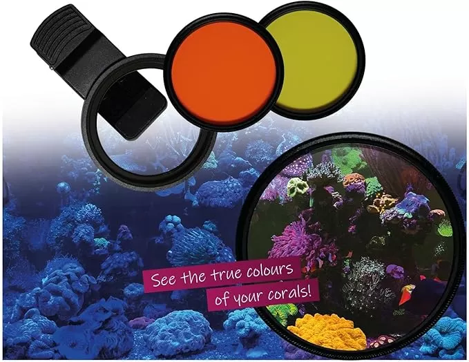 De Aqua Medic Colour Filter Set voor Smartphones is speciaal ontworpen om de kleuren van je aquarium optimaal vast te leggen met je smartphonecamera. Deze filters verbeteren de belichting en elimineren ongewenste kleurtinten, zodat je foto's de ware schoonheid van je vissen en koralen weergeven.