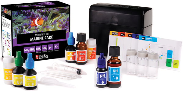 De Red Sea's Marine Care Kit is een complete set met easy-to-use testen. NH3/NH4, NO3, NO2, PH, KH