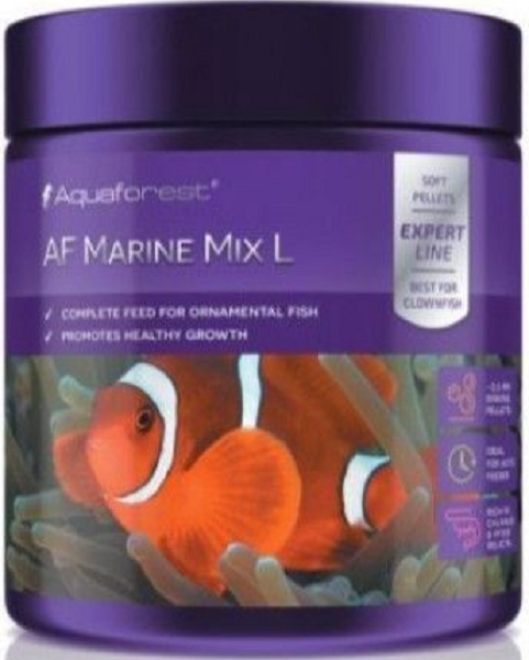 Aquaforest AF Marine Mix L is voer in korrelvorm aanbevolen voor onder meer carnivore vissen, zoals anemoonvissen. De voeding bevat een hoog eiwitgehalte om vissen een goede groei en een uitstekende conditie te geven.