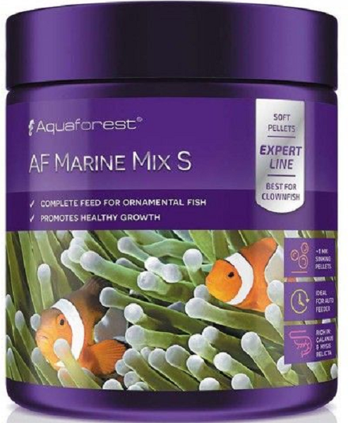 Aquaforest AF Marine Mix S is voer in korrelvorm aanbevolen voor onder meer carnivore vissen, zoals anemoonvissen. De voeding bevat een hoog eiwitgehalte om vissen een goede groei en een uitstekende conditie te geven.