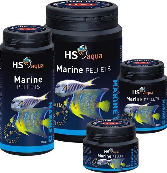 HS Aqua Marine Pellets 100 ml is uitgewogen, volledig voer voor alle zoutwater aquariumvissen. Dit voer heeft een hoog gehalte aan licht verteerbare, plantaardige en dierlijke eiwitten en kleurversterkende, natuurlijke pigmenten.