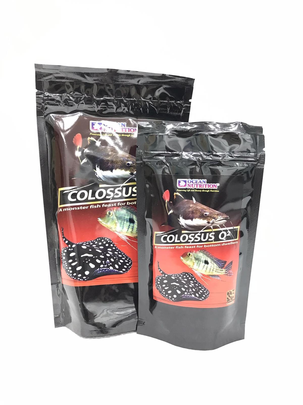 Ocean Nutrition presenteert met trots een gloednieuw topproduct: COLOSSUS! Ocean Nutrition's ingenieurs, voedingsdeskundigen en professionals op het gebied van visvoer hebben hun jarenlange ervaring in dit EXCLUSIEVE, high-end type zoetwatervisvoer gegoten. COLOSSUS is een reeks van grote langzaam zinkende pellets (Q2-range) en snel vocht absorberende drijvende sticks (X2-range) zorgvuldig ontworpen voor zoetwater vissoorten zoals Arowana's, Cichliden, Meervallen, Roggen, Pleco's, Oscar's en elk ander type van reusachtige zoetwater soorten.