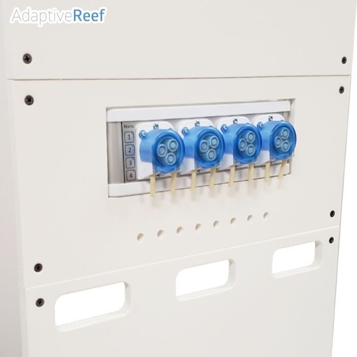 Het Neptune Systems DŌS Dosing and Fluid Metering System is een populair automatisch doseersysteem dat perfect past in de besturingskast in combinatie met de DŌS frontplaat. U kunt het apparaat in de standaard verbergen voor een schonere en veiligere installatie. De uitsparing in de frontplaat past als gegoten bij de DŌS. De twee doseerkoppen en twee knoppen aan de voorkant van de DŌS zijn nog steeds goed bereikbaar. Deze frontplaat neemt twee van de acht slots op de controllerkast in beslag.