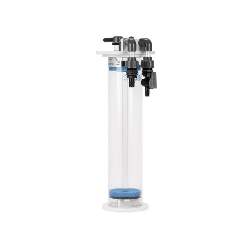 De reactor is voorzien van een doorzichtige acryl cilinder en een stevige schroefdeksel voor gemakkelijke toegang en reiniging. Je sluit eenvoudig een externe opvoerpomp aan via de slangtules. De stabiele voetplaat zorgt voor een veilige plaatsing in het sumpgedeelte van je aquariuminstallatie.