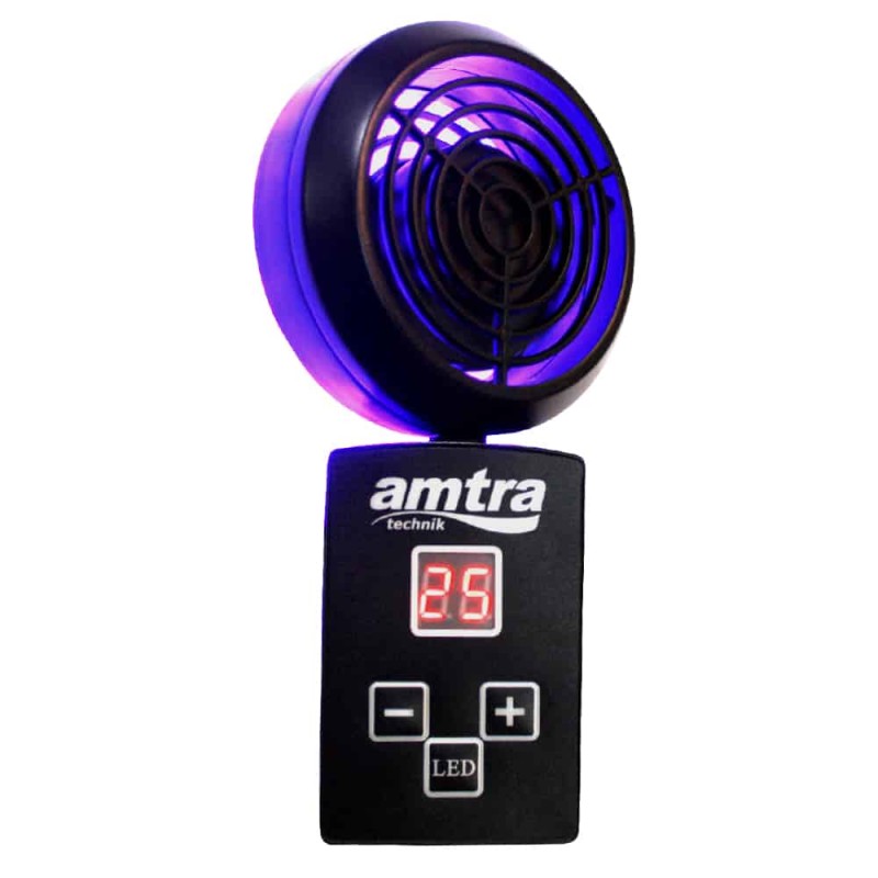 De Borea 80 LED van Amtra combineert twee functies in één: een krachtige koelventilator en sfeervolle LED-verlichting. De ventilator creëert een constante luchtstroom over het wateroppervlak, wat zorgt voor verdampingskoeling en zo de temperatuur met enkele graden verlaagt. Ideaal bij zomerse hittegolven of in kamers zonder airconditioning.
