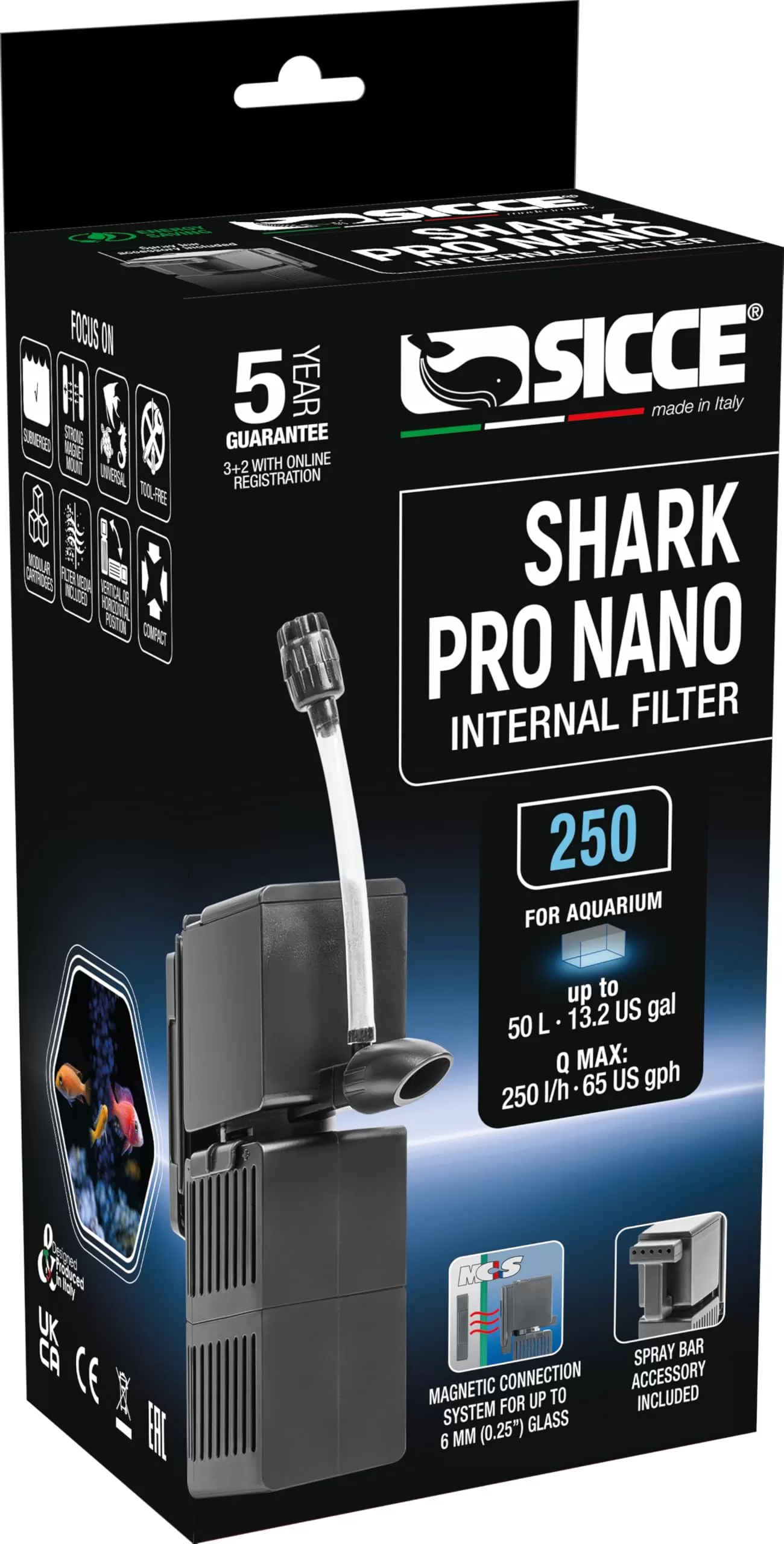 Sicce Shark Pro Nano 250 is een compacte en efficiënte interne filter, speciaal ontworpen voor nano- en kleine aquaria. Met zijn krachtige filtratie en stille werking zorgt deze filter voor kristalhelder water en een gezond aquatisch milieu.
