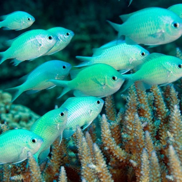 Juffertjes zijn zeer leuke visjes voor zowel de beginnende en gevorderde aquariumliefhebber .Ze zijn zeer kleurrijk en vaak makkelijk te houden. De Blue Green Damselfish is met 9 cm een kleine soort onder de juffers.En bij uitzonderling zijn deze juffers niet agressief naar andere vissen toe. In een kleiner aquarium is het aan te raden niet meer dan 1 exemplaar te plaatsen omdat de visjes wel heel agressief en territoriaal kunnen zijn .Voor grotere aquaria met een rif geld dat er makkelijk een schooltje in geplaatst kan worden mits er voldoende schuilplaatsen zijn, het beste is ongeveer 9 stuks tegelijk te plaatsen. De Groene Juffer is een makkelijke eter, pellets, flakes en diepvriesvoer lusten ze allemaal .