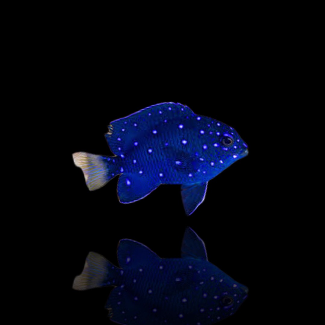 De Microspathodon chrysurus, beter bekend als de Geelstaart Juffer, is een krachtige en karaktervolle rifvis afkomstig uit het Caribisch gebied. Juveniele exemplaren zijn diepblauw met felblauwe stippen, terwijl volwassen vissen donkerder kleuren en een opvallende gele staart behouden, wat zorgt voor een sterk contrast.