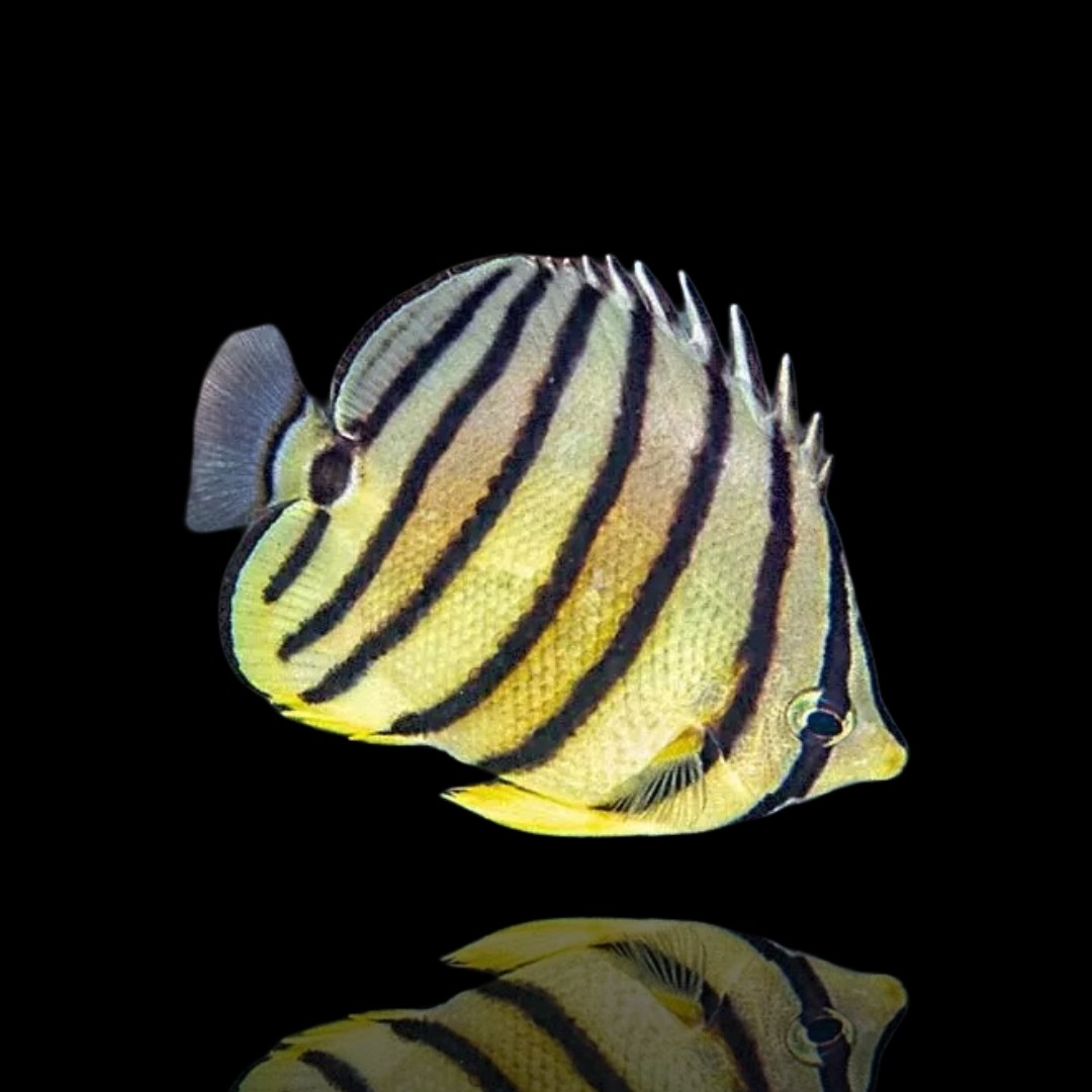De Chaetodon octofasciatus is een vis van uitzonderlijke schoonheid dankzij zijn kenmerkende strepenpatroon. Hoewel hij in het wild nauw verbonden is met koraalriffen, is hij in gevangenschap uitdagend te verzorgen. Ideaal voor ervaren zeeaquarianen met de juiste kennis en een geschikt aquarium zonder kwetsbare koralen.