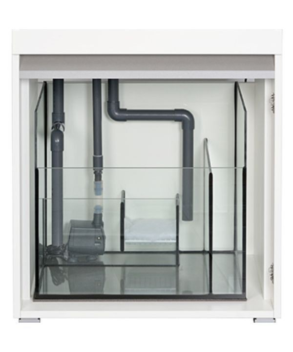 De ruiten van zuiver wit glas, gecombineerd met de speciaal ontworpen, zeer efficiënte LED-verlichting, geven een duidelijk zicht op de exotische onderwaterwereld. De geïntegreerde overloopbeveiliging biedt extra beveiliging en de royale filtercarter maakt onderhoud eenvoudig. Het systeem werkt stil dankzij de gepatenteerde, geruisloze overloop. De EHEIM compactON 3000 retourpomp is inbegrepen en alle leidingen en kabels zijn voorgemonteerd voor 'plug & play'.